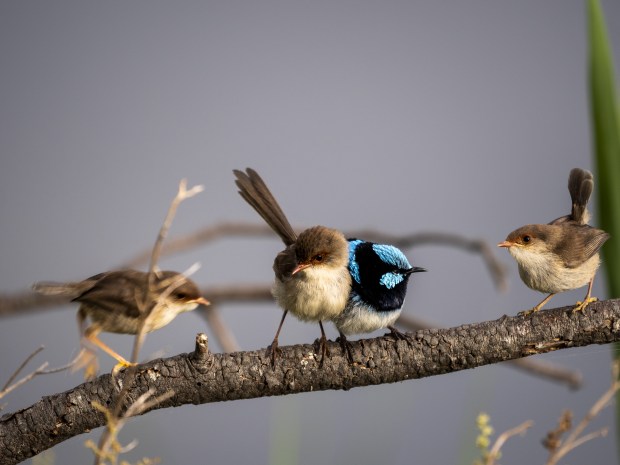 I photographed these gorgeous superb fairy wrens on Christmas morning. Their behaviour was amazing to see. One wren was joined by a female whom he welcomed warmly. They were then joined by two other females and a snuggle fest was on. The morning light was beautiful against the backdrop of Victoria’s Mitchell River in East Gippsland.