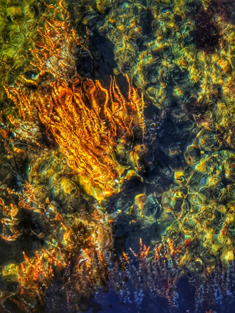 At the edge of the lake where you can find all the colours of the rainbow within the reeds, rocks and coral