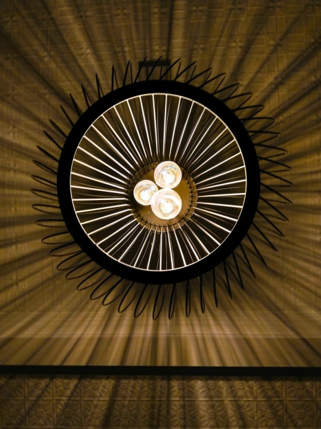 I was staying in an old hotel in country Victoria and the lamp lights hanging from the ceiling made an striking image when looking directly upwards.