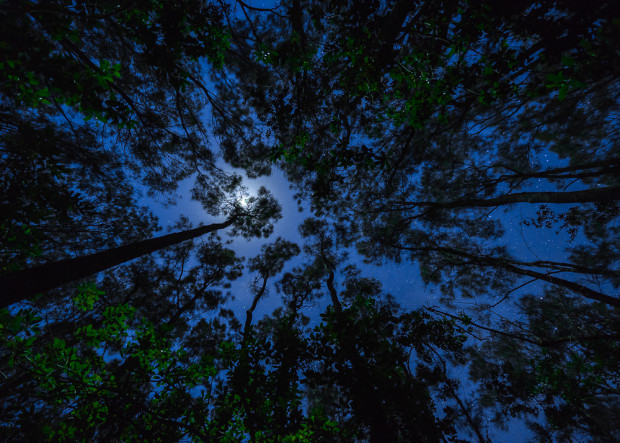 On a night photo walk scouting for Milky Way shots, I came across these sky tickling trees and decided to point the camera directly up for a long exposure