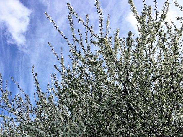 This photo was of a flowering tree, but the hero ended up being the unusual upright cloud formations, sort of like wispy smoke plume.