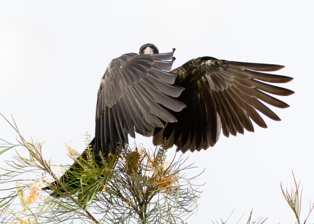 Juvenile yellow-tailed black cockatoo against a cloudy sky