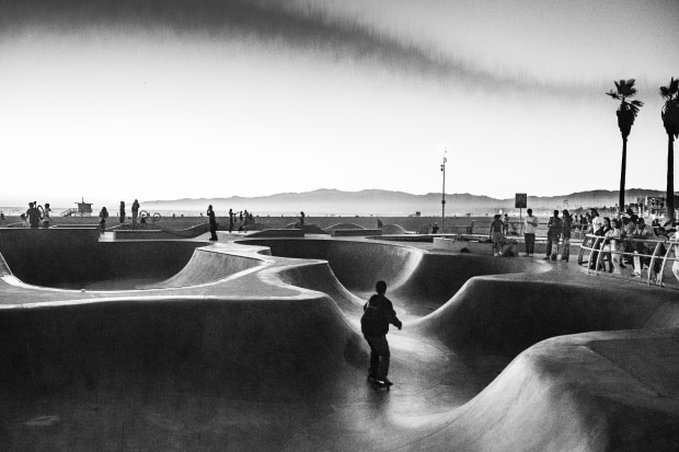 Venice Beach in Los Angeles is a place where prople leave the privacy of their homes to enjoy the great outdoors. Even at dusk the area is a hive of activity with the skate park being a popular attarction.