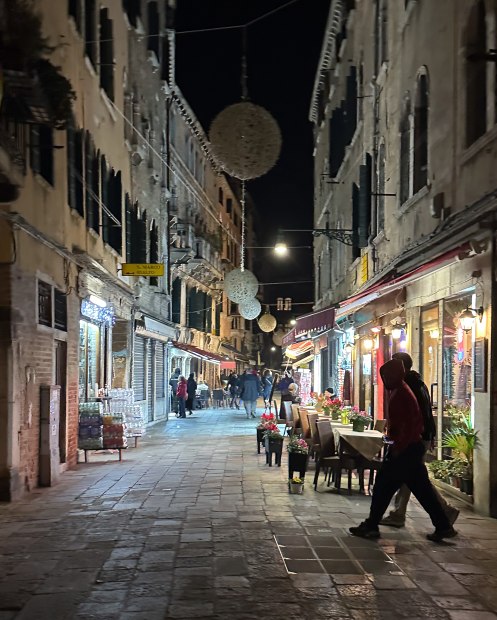 In search of restaurant for evening meal this scene typifies Venice