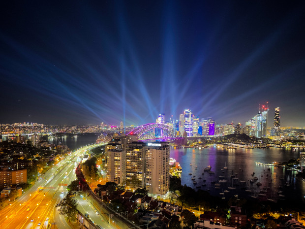 Image from Vivid looking towards Sydney Harbour from North Sydney