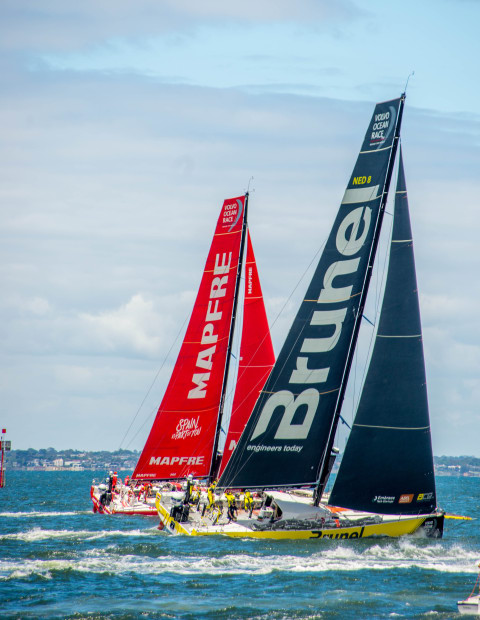 Competitor in the Volvo Yacht race leaving from Melbourne bay.