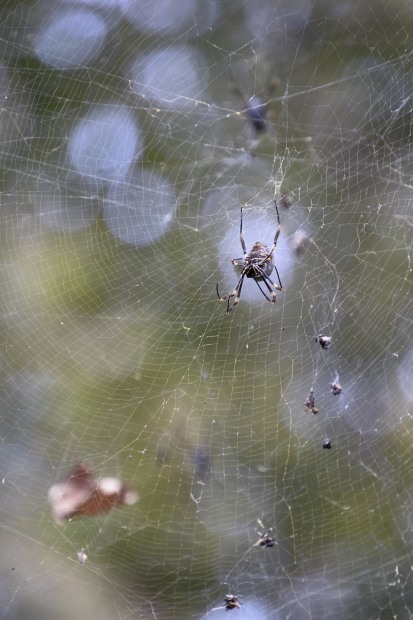 Taken at the botanical gardens. Amongst the innocent looking plants, there lives this occupant with its meals all lined up and hiding in plain sight.
