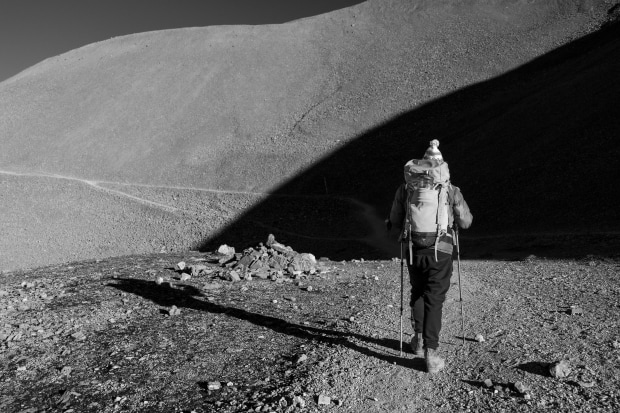 Winding through the barren, cold, and rocky approach to Thorong La Pass