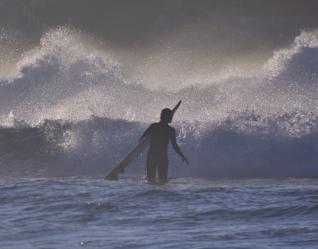 Surfer entering water at Bondi