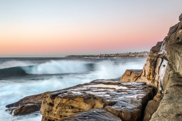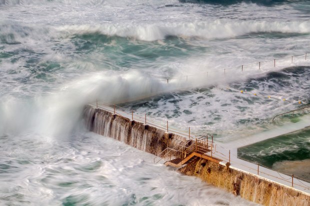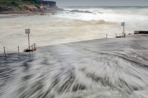 I have been drawn to water ever since my earliest memories as a child. There is something about being near the water that benefits the mind and body - reducing stress and anxiety and increasing our sense of well being and happiness. This particular series has been taken on Sydney's beaches - at Bondi and Clovelly. I love to watch the play of the waves breaking on the rocks. These were from my recent trip, as soon as the plane landed and I had my hire car I headed off to the beach to fill in time before I could check in to my motel and one photo is from this. The following day was the day of the extreme weather event, so I was drawn to the beach and the waves flowing over the pavement at Clovelly was amazing to watch and I wanted to record the flow of it. Next day saw me at Bondi Icebergs the surf was still crashing. The other one was taken at sunrise, but the reverse sunrise with the beautiful pastel colours in the sky.