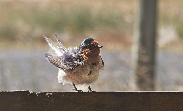 A little swallow sitting on the handrail