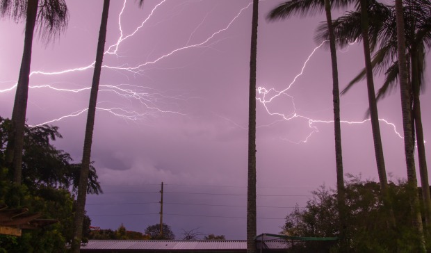 Lightning streaks across a lavender sky, illuminating palm silhouettes as the atmosphere crackles with heat and anticipation. This fleeting moment reveals summer’s wild voice—bold, electric, and impossible to ignore.