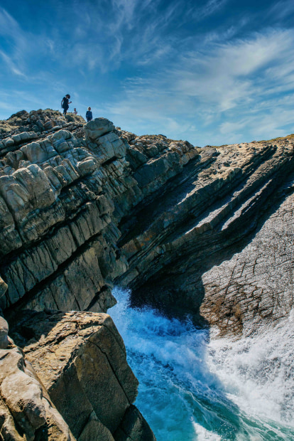 Hiking on the jagged rocks of the New south wales coast, enjoying the blue skys and water.