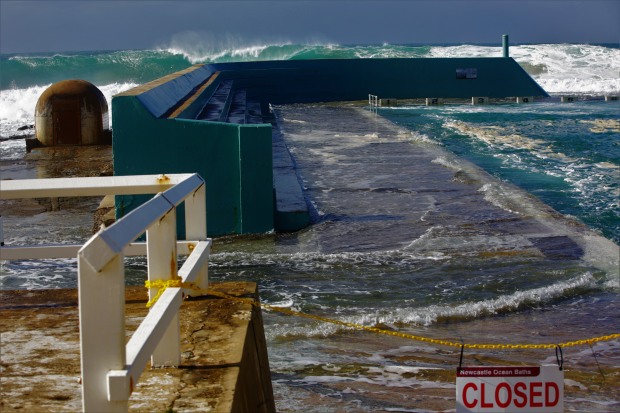 Wild weather whipped up the swell in Newcastle recently flooding and closing the ocean baths