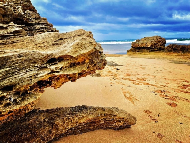 The photos were taken during Melbournes winter, when the clouds are rolling in over the maginificent curves of the roaring waves.