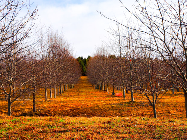 Fields of Trees who have dropped their leaves during autumn and now surviving a cold winter whilst awaiting for spring to arrive again to flourish in its beauty.