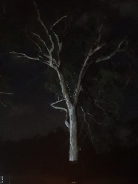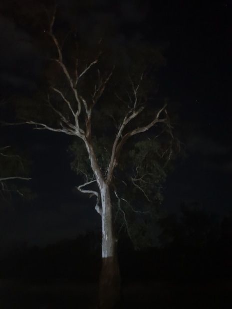 Taken on wakool river firelight lighting the tree