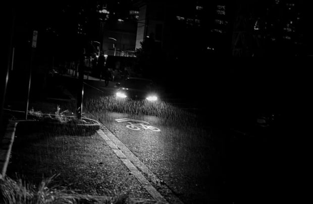 john z, Winter's Embrace: Headlights in the Rain (August theme: Seasons)