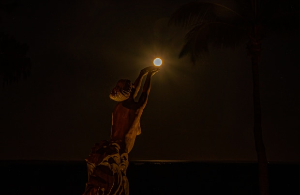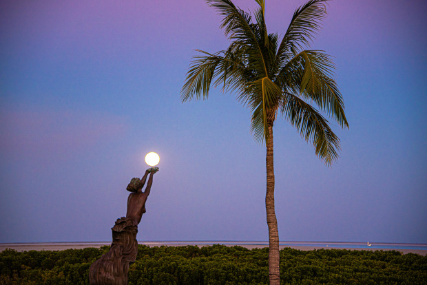 A female Indigenous diver coming out of the water, pearl shell in hand, a sculpture paying homage to the women who contributed to Broome’s pearling history for over a century. Also, recognising the “Blackbirding” phase where the women were forcibly kidnapped to pearl luggers and had to dive for pearl shells in deep water often without breathing apparatus, unfortunately many drowned.