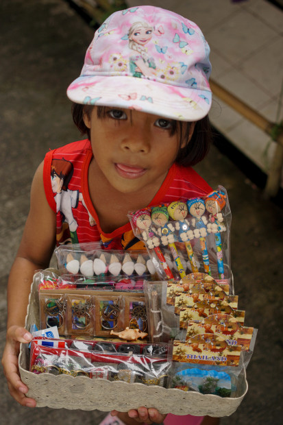 Young girl selling souvenirs on floating muslim fishing village (Panyee Island), Phang-Nga, Thailand