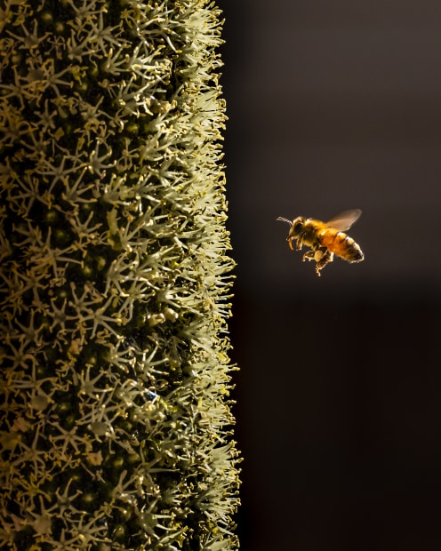 Limited with a badly broken ankle and lockdown, I began looking for inspiration. Fortunately, our Grass Tree flowered at just the right time and I became mesmerised by the native bees attracted to its nectar and insects taking shelter in its grassy fronds,