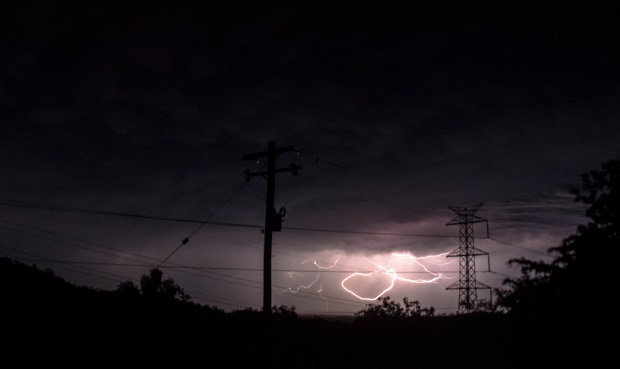 Lighting doing it's dance in the distance as a super quick storm passed overhead.