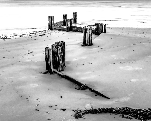 A different perspective of the zig zag groin in Balnarring, at low tide